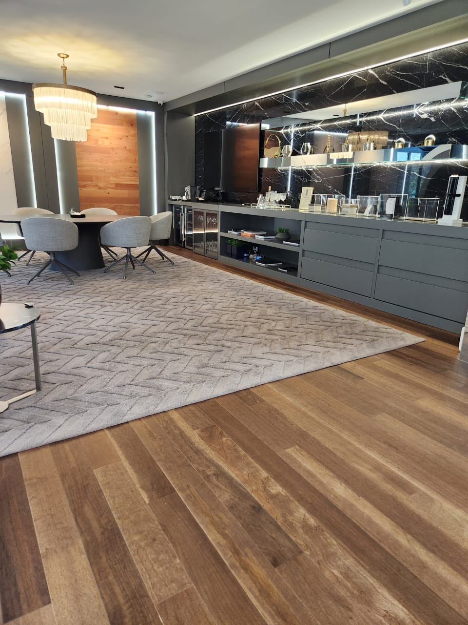 A Quaruba Natural é uma essência exclusiva, com tons de marrons claro e escuro em uma variação moderada na combinação entre as réguas, proporcionando elegância ao projeto.