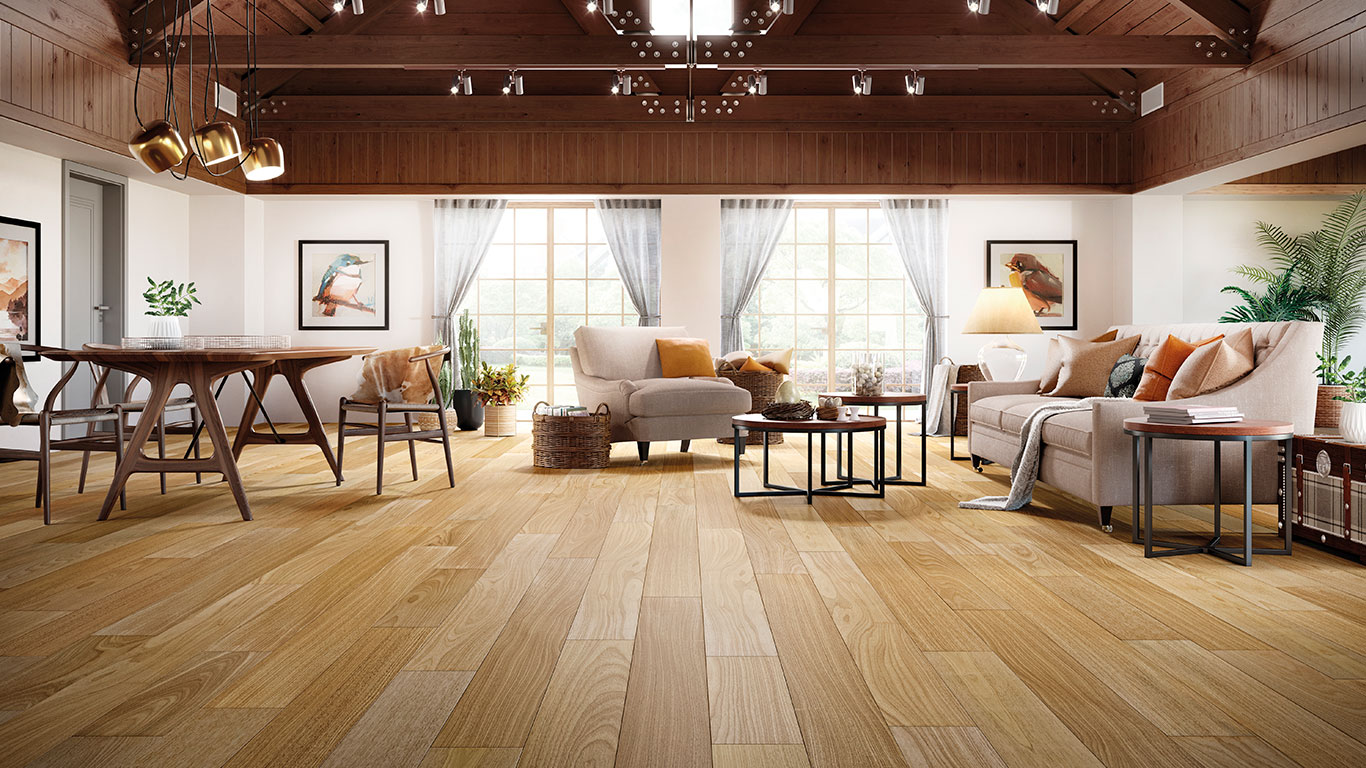 Luminosidade e calor! O piso Tauari Harbour traz a beleza da madeira natural de forma única, com seus tons caramelos amarelados que realçam a beleza de diversos estilos de decoração.